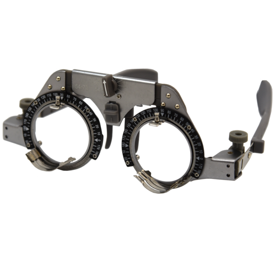 Lightweight spring hinged Trial Frames are both lightweight and easy to use. PD can be adjusted from 54mm to 70mm and accommodates up to four 38mm Trial Lenses on each side. Also contains axis of astigmatism and one touch adjustment on nose pad. This lightweight and durable trial frame is ideal for kids!